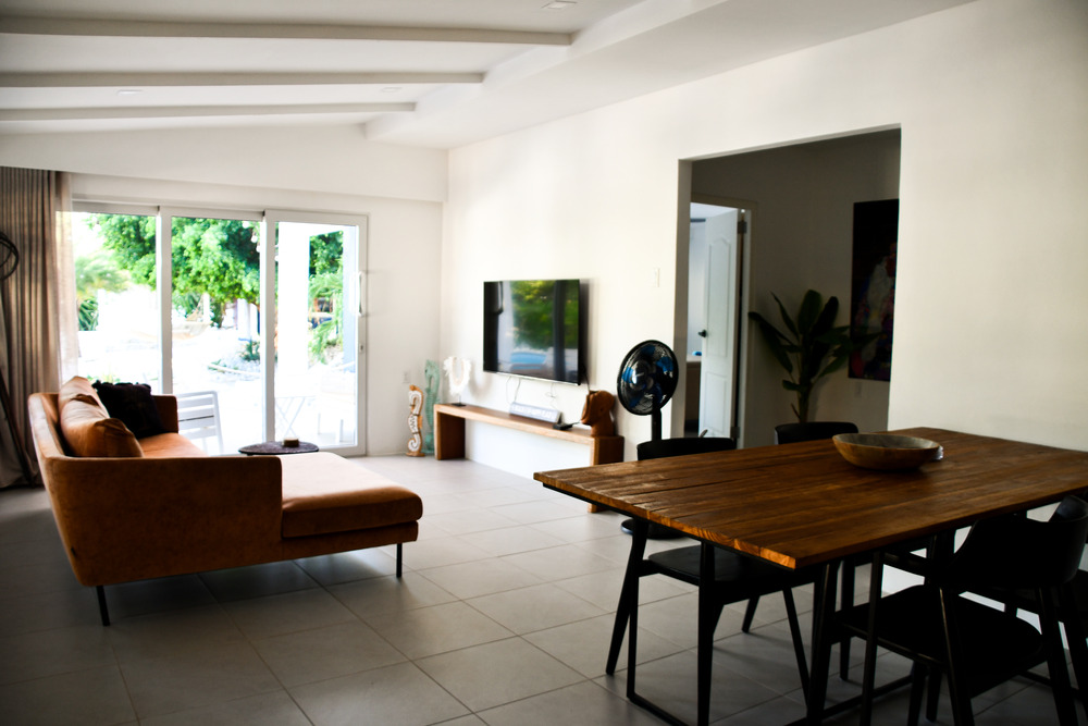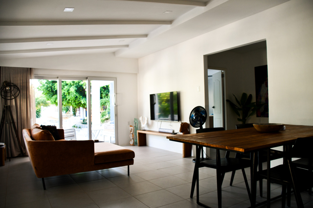 Welkom in ons mooie huis TRES, voor een ontspannen verblijf op Curacao. De woning TRES is slim ontworpen met een gecombineerde woon- en eetkamer voorzien van een open keuken, waardoor er een knusse en efficiënte ruimte ontstaat. De inrichting is stijlvol en comfortabel, met zorgvuldig gekozen details die een warme sfeer creëren.